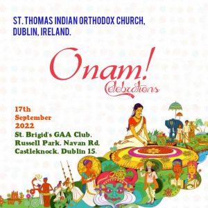 Onam Celebration of our Parish would be on 17th Sep from 10 AM onwards. Venue – St. Brigid’s GAA Club, Russell Park, Navan Road, Castlenock, Dublin 15. 1st September 2022 at 9:08 am Office Indian Orthodox Church Ireland Messages Share via: