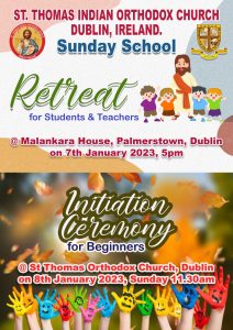 A retreat has been arranged for Sunday school students and teachers in Malankara House on 07/01/2023 @ 5:00 pm.